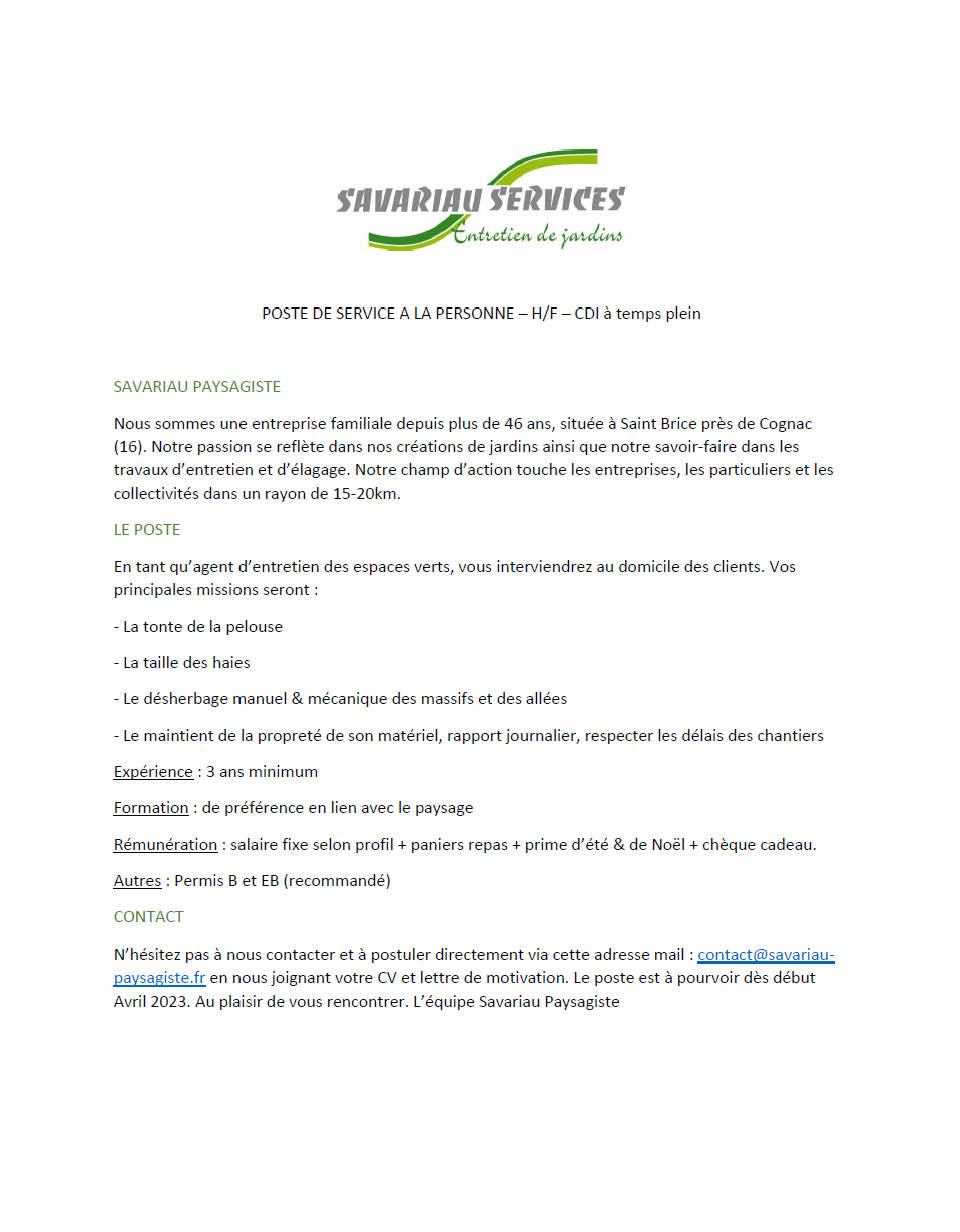 Découvrez nos opportunités de carrière et rejoignez notre équipe dynamique chez Savariau Paysagiste. Nous recherchons des talents passionnés pour contribuer à notre succès continu.