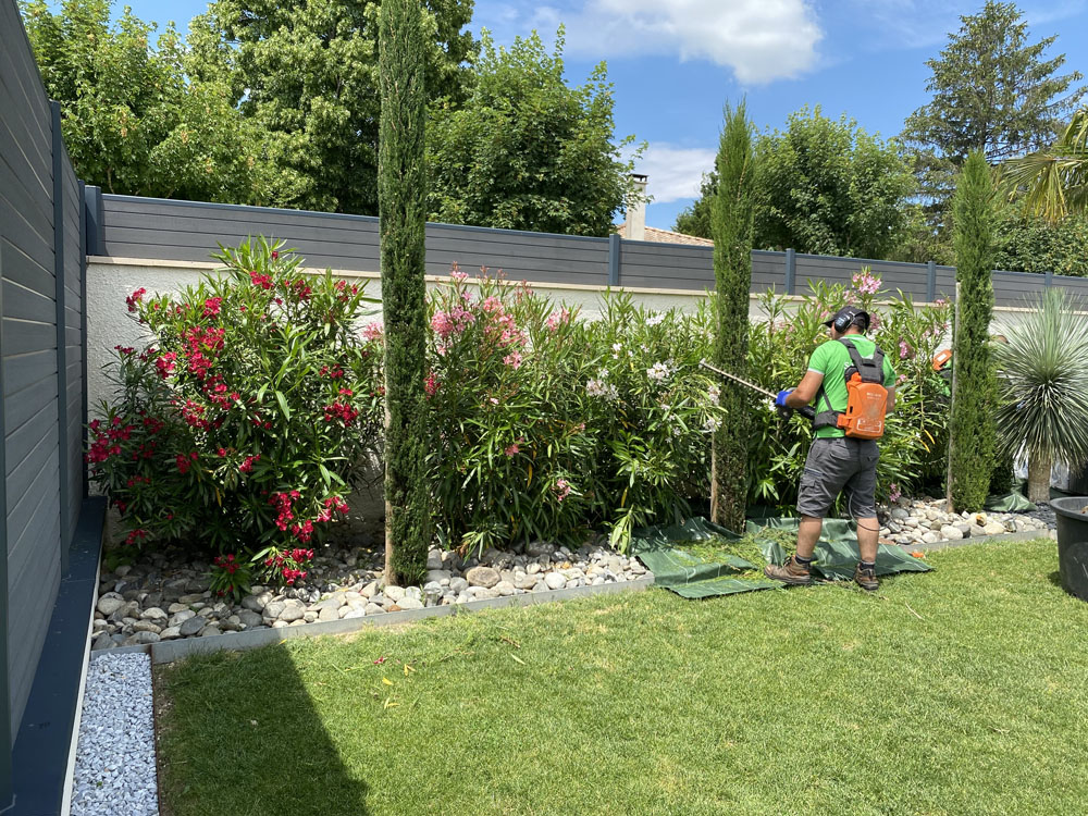 Notre équipe d'entretien se charge d'assurer le suivi et la pérennité de vos extérieurs (tonte, débroussaillage, maintenance de l'arrosage...).Par ailleurs, le savoir-faire de nos arboristes grimpeurs leur permet de prendre en charge tous types de taille sur le végétal :